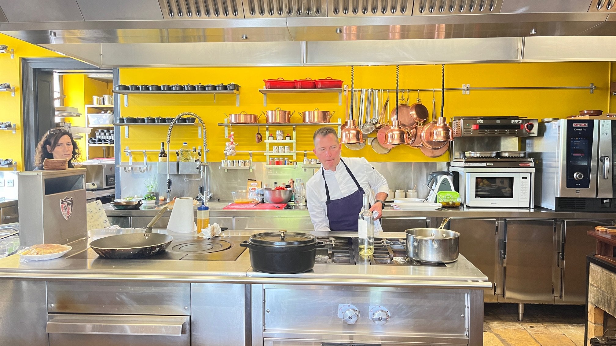 We knew we were all in trouble when, at the end of dinner, our host summoned yet more magnums from the cellar. We were escorted to the terrace again for further consumption with a suggestion that the ladies took off their clothes! It was a high-octane evening with kisses, gifts of recipe books and caps before departure.