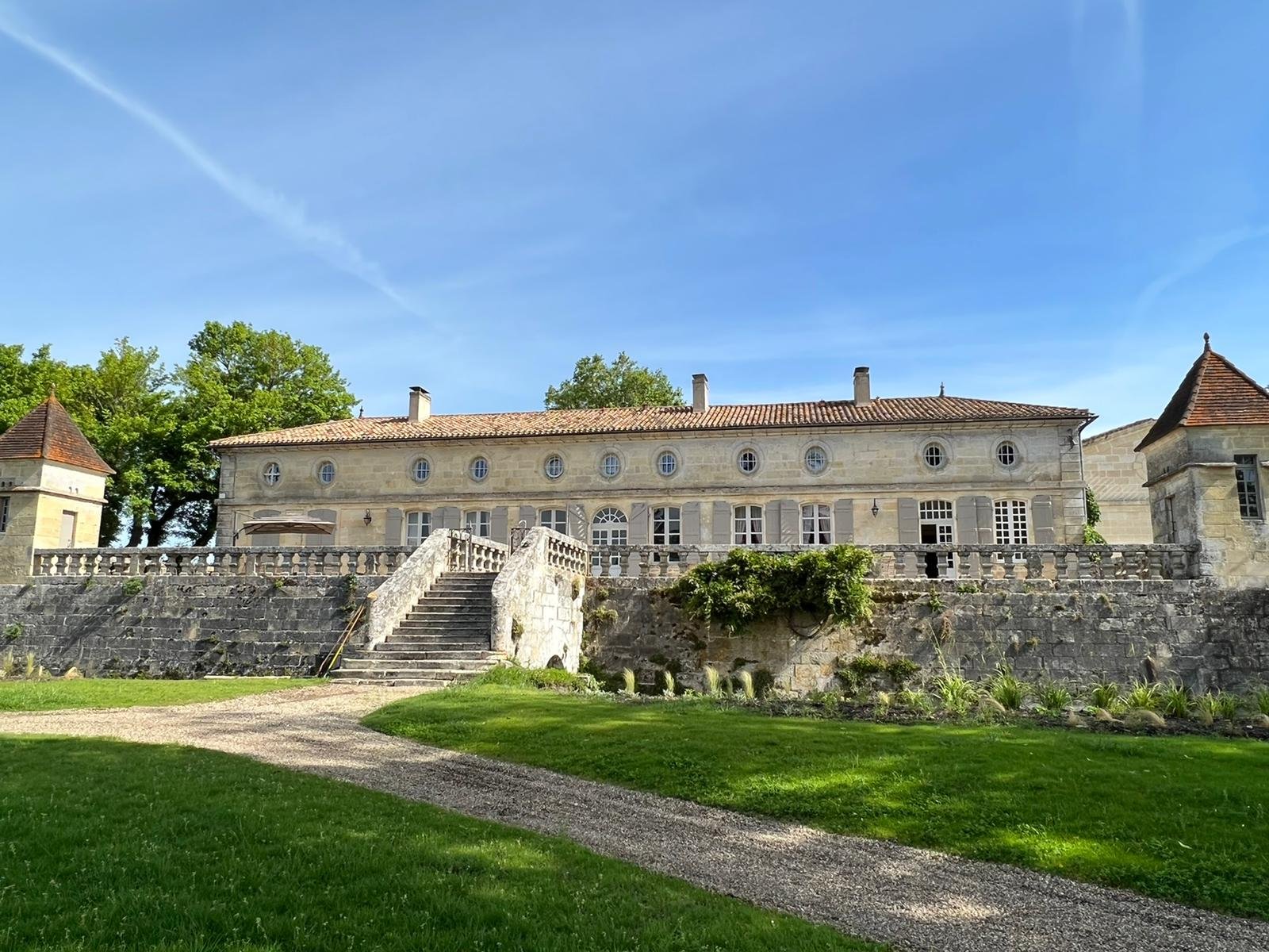 Wednesday was another full day and a real treat. After fighting the city traffic our first stop was in Entre Deux Mers at Ch Montlau – possibly the oldest estate we visited being on the site of a Roman settlement. The estate itself dates back to 830 and the oldest tower to 1130. Once again we were entranced by a magnificent tree – a Lebanon Cedar c.450 year old. The owner – Armand Schuster de Ballwil – is one of the regions great characters – warm, welcoming and knowledgeable – and he and his family run one of the most beautiful estates I’ve ever seen. It may not be located in the most fashionable part of to the region but I think any of us would have chosen it as a place to spend our lives. We enjoyed a tasting on a terrace overlooking the Dordogne with Pomerol and Saint Emilion in the distance. There were 6 different Entre Deux Mers whites from 2017 – good, light and refreshing after the heavier reds of recent days and surprisingly different in style from each other. They were also a minor miracle given the frosts of that year.
