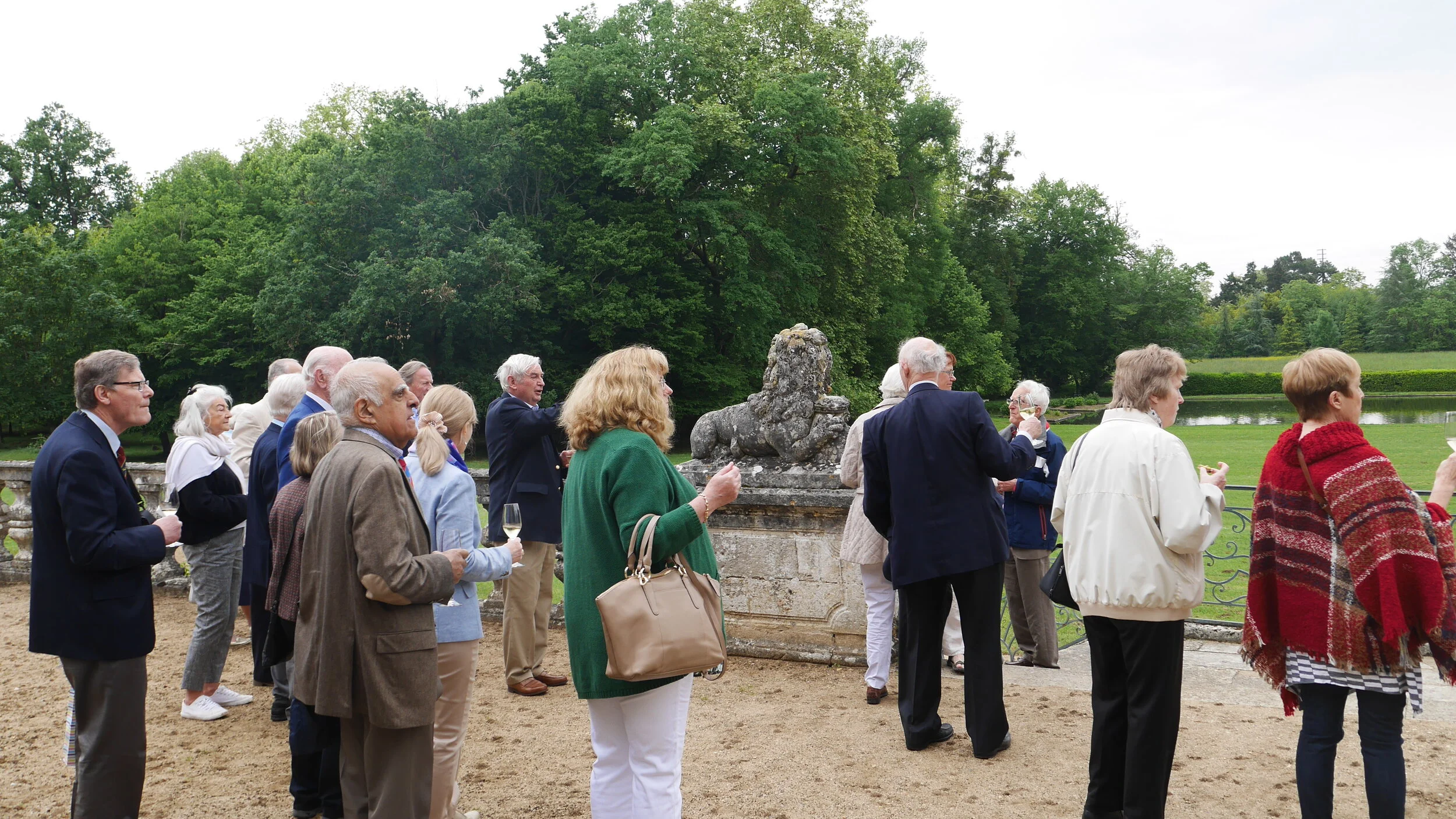After champagne and canapes on the terrace overlooking the lovely lake we escaped the rain by moving inside for a spectacular lunch accompanied by 3 flights of 3 wines dating back to 2008 from de Sales and his neighbours’ properties dating back to 2008 (another discovery for some of the party – 2008 is a seriously under-rated vintage) and finishing with a real treat – de Sales 1990 – definitely mature but soft and lovely. I was lucky enough to sit at the same table as Dominique Vayron of the excellent Ch Bourgneuf who enchanted us with her account of 8 generations of her family to run the chateau (her daughter Frederique is now the winemaker there).