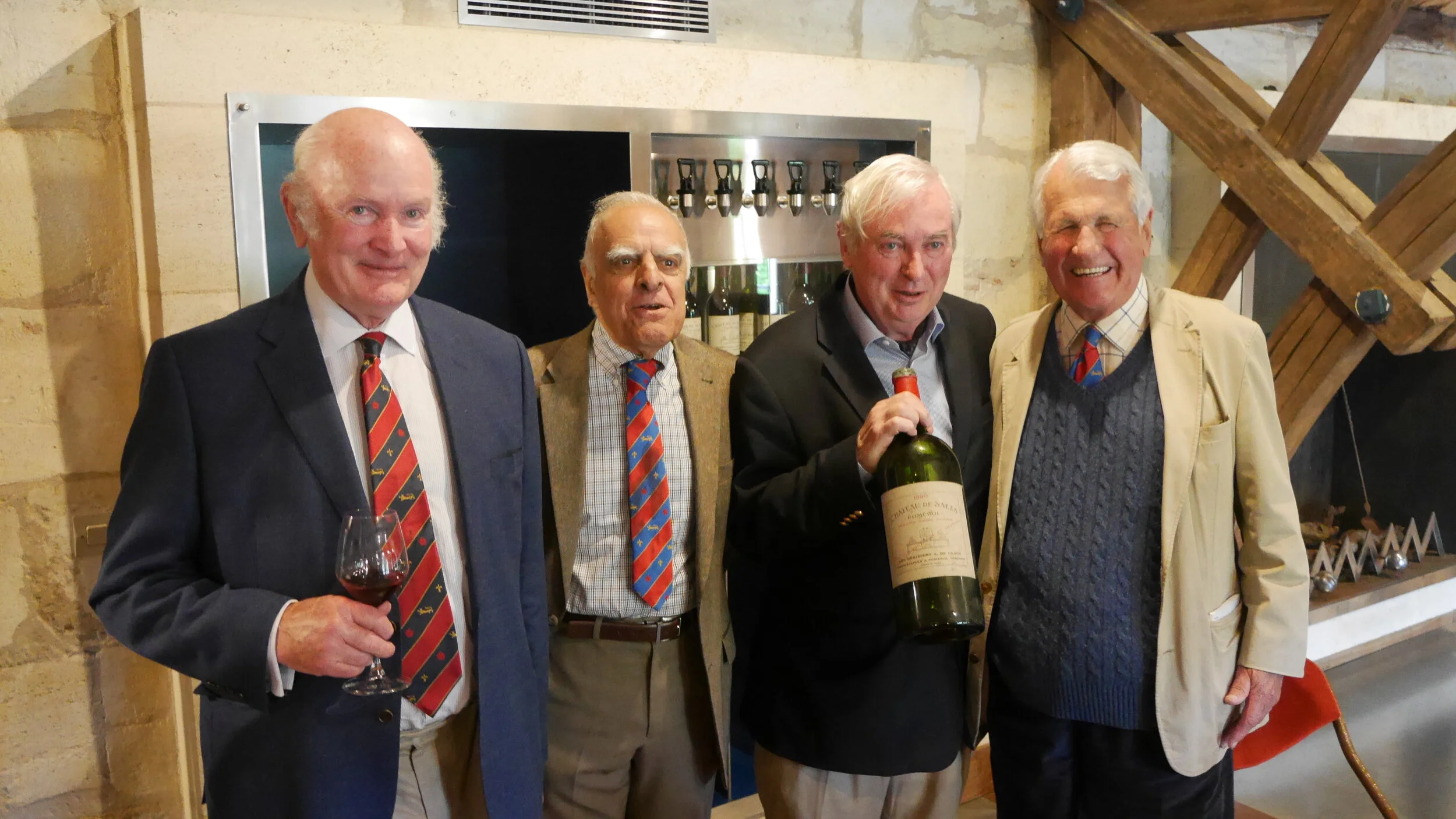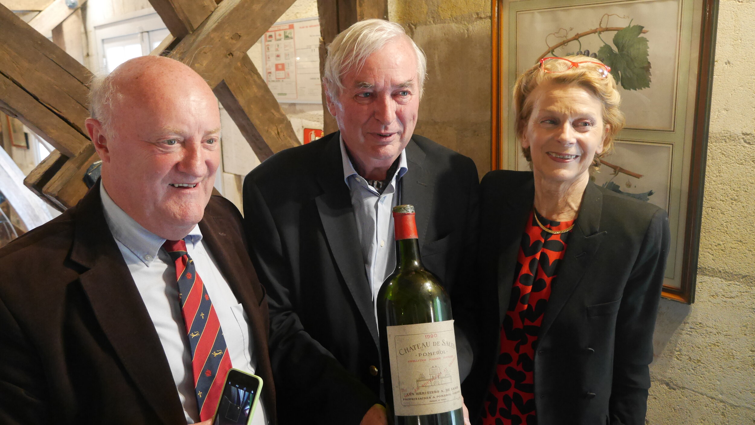 Our first stop of the day was another old friend of the Commanderie - Bruno Gonzague de Lambert at the splendid Ch de Sales – an historic estate and the largest in Pomerol. He showed us the beautiful grounds and explained the long and illustrious history of the place including the ‘censoring’ of certain pictures and the accidental discovery of ancient tapestries in one of the old store rooms, and on a more serious note gave us an insight into the problems faced by family-owned properties from the French inheritance laws. A very engaging and charming host Bruno also introduced us for the first time in the week to the concept of ‘sexual confusion’ to control pests in the vineyards – a technique his estate pioneered.