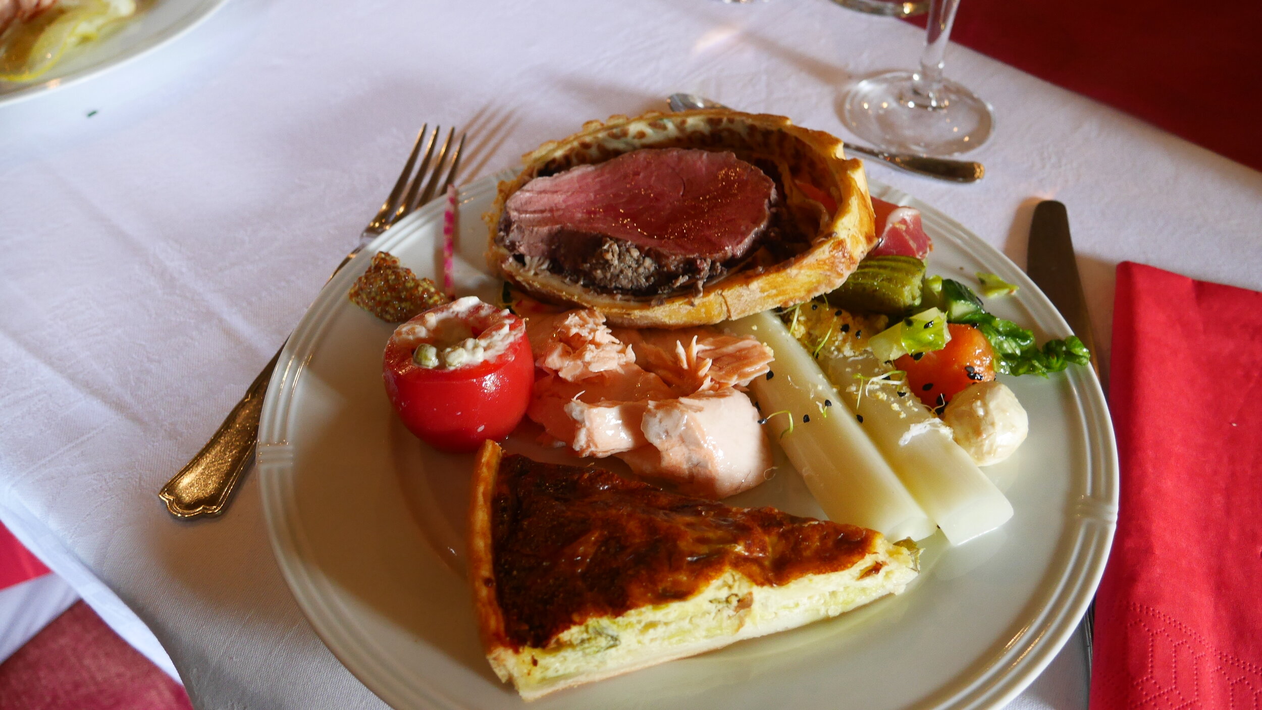 The journey down to Portsmouth went smoothly and was aided by a number of bottles which seemed to have found their way on to the coach. Overnight sustenance was provided by the useful excellent catering on board Brittany Ferries (a very pleasant surprise for those of the party who hadn’t travelled with them before and an appropriate introduction to the week of fine dining before us).