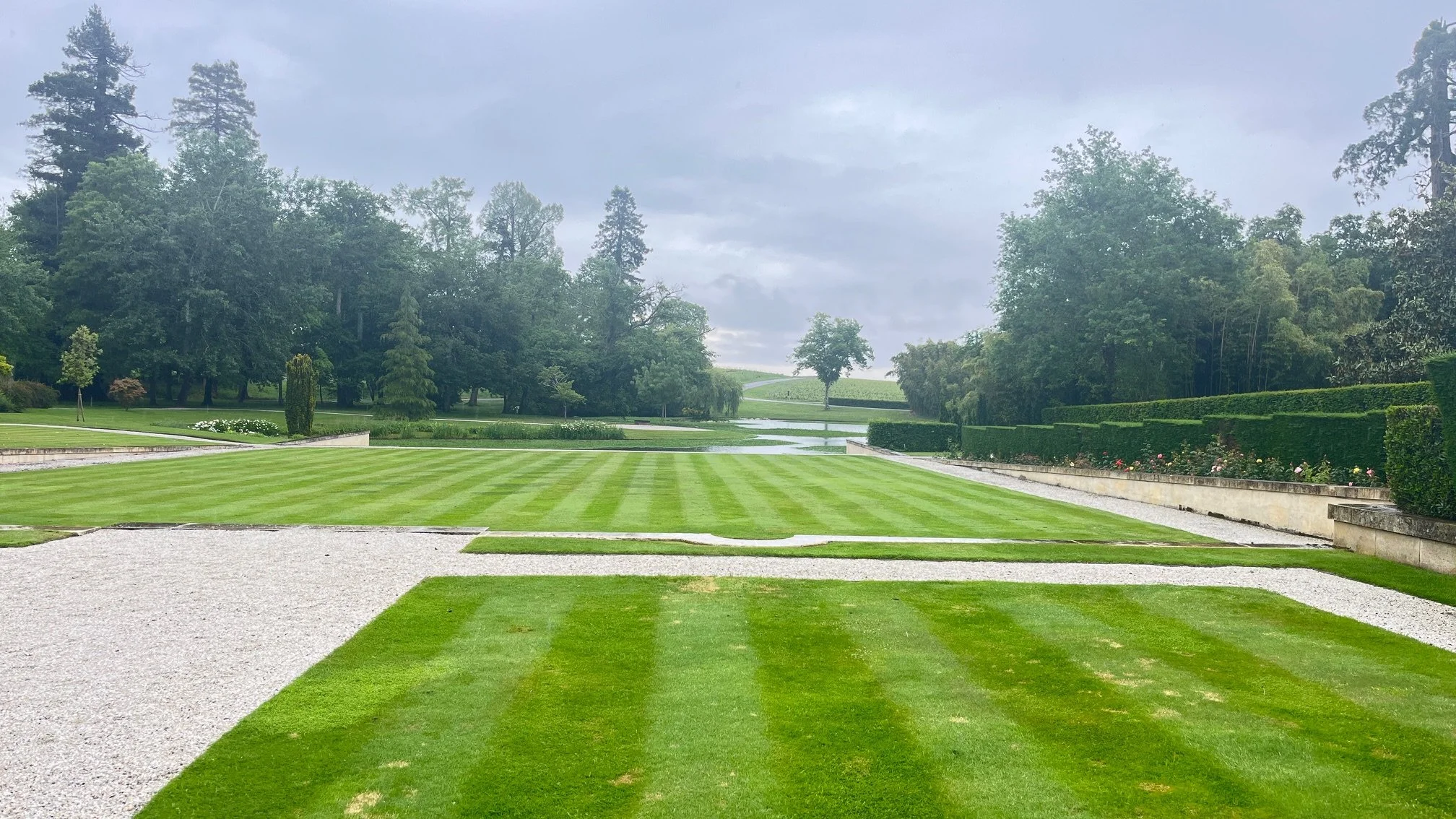 Château Paveil de Luze is a Cru Bourgeois of 32 hectares dating from the 19th century. The grounds and gardens were beautiful and very serene; a great place to be locked down in, I thought, especially with all that wine...