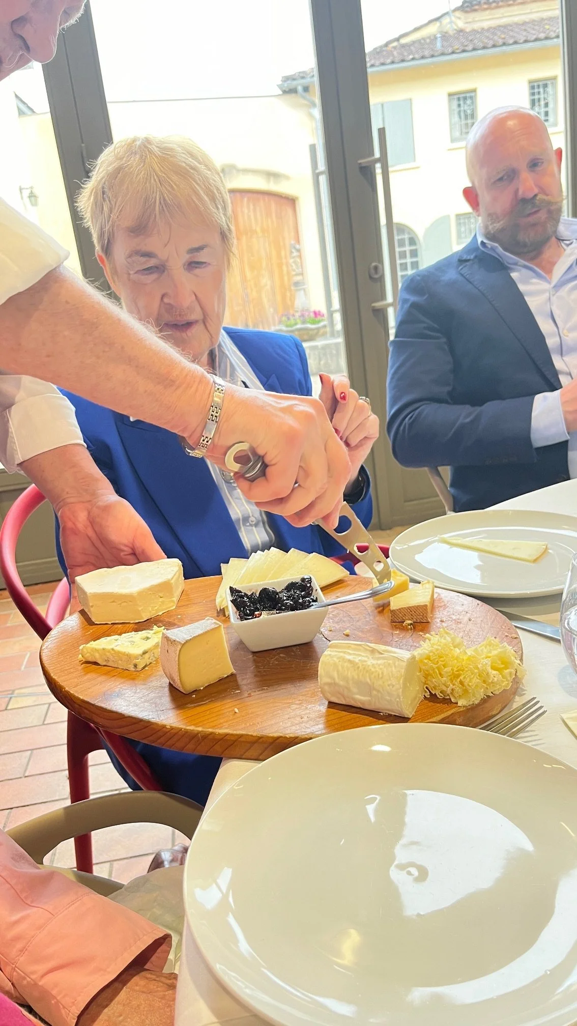 Our next hosts were Madame Lilian Barton & family - daughter of the late Anthony Barton - another family who are part of the Bordeaux legend. Initially, we had our tour of the wine-making facilities and then we were treated to a generous cold buffet with champagne which we assumed was lunch. It was therefore with great surprise that we were invited to leave the warm terrace to go for lunch! Having again been further entertained by the activities of the family dog, we sat down with the family for a lunch accompanied by wines from the various parts of the Barton “stable” .