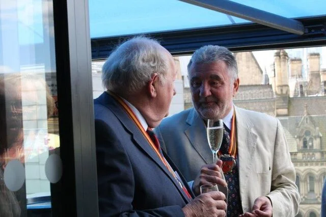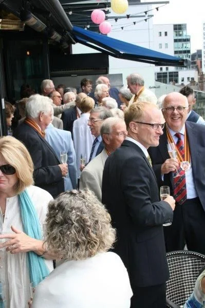 As for last year, we gathered on the glass edged balcony with (depending on your perspective) a spectacular view and/or a scary drop onto the Manchester rooftops and skyline; as cloud and sun fought for dominance. As we assembled, we enjoyed a nice glass or two of Saumur and caught up with old friends and met some of the guests.