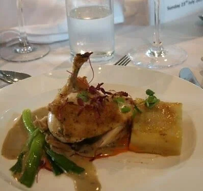 Whilst the description of corn fed chicken, with wild mushroom and tarragon sauce, accompanied by sweet potato purée, baby leeks and Lyonnaise potatoes, may not set the heart racing; the execution of the cooking and the flavours were delicious. Though could not match the superb Château Langoa-Barton 2007, 3ème Cru Classé A.C. St-Julien. This wine is drinking exceedingly well and Commandeurs experienced and understood what a treat they had had.
