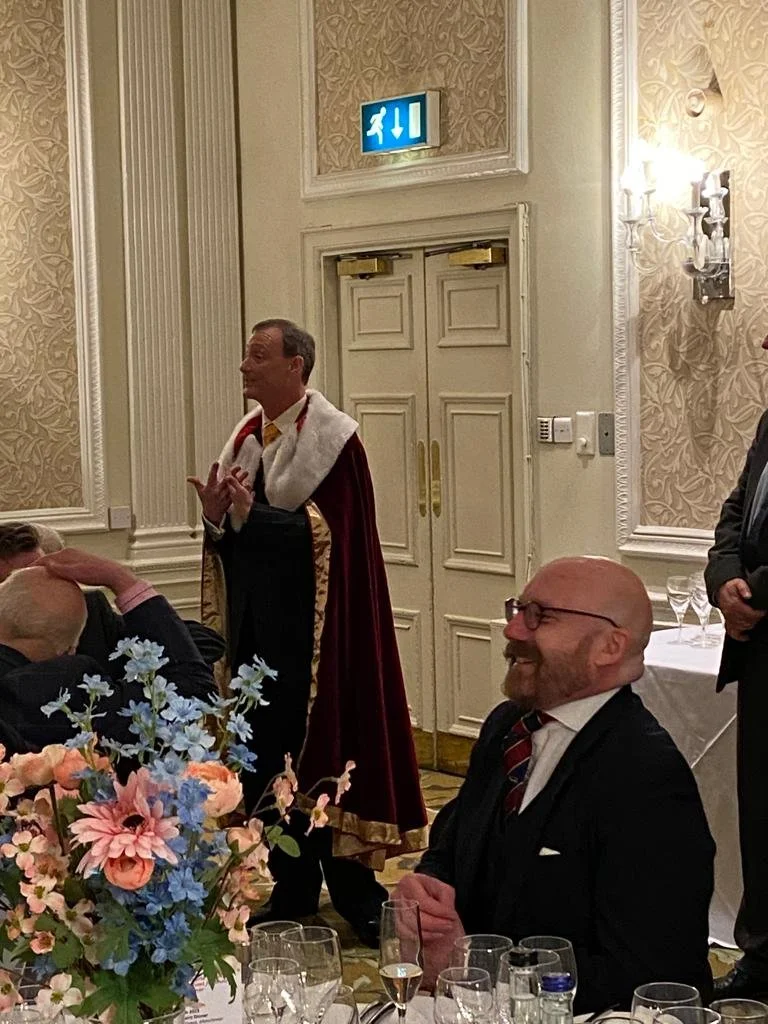Maître set a light hearted tone for the evening by taking us from Mozart to Elvis Presley in a few seconds. We then had the intronisation ceremony for our newest member, Richard Crabtree, who raises money for people with brain and spinal injuries in his spare time on top of a busy career in the Law.
