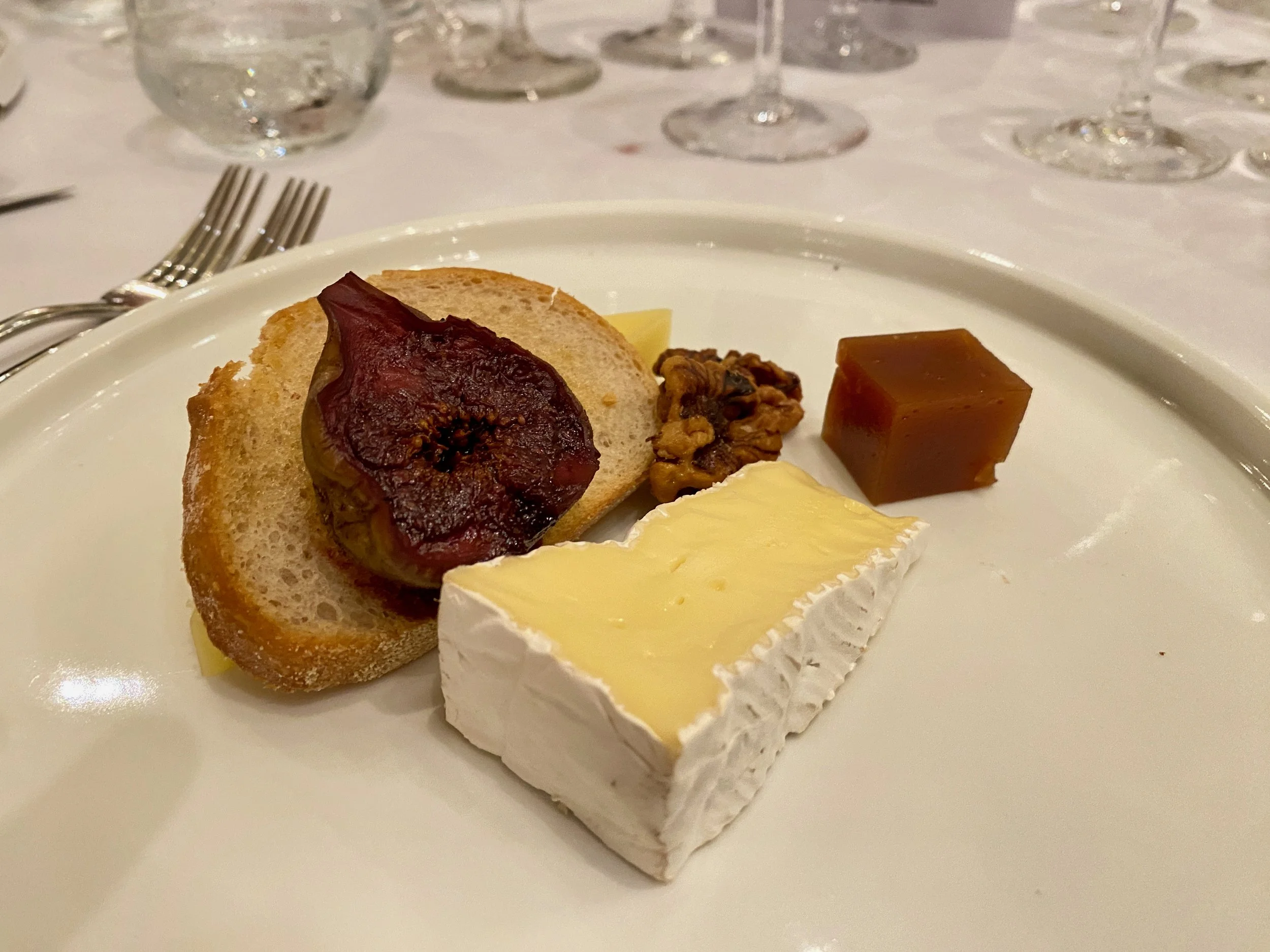 As the Intronisations took place L’Esprit de Chevalier Blanc 2013, AOC Pessac-Léognan was served and, once again, was well received. The wine proved to be quite complex with a wonderful grapefruit nose. It was observed that, whilst 2013 was not a great vintage, this wine was excellent and quite a treat. We were informed that the wine had been very generously provided by Olivier Bernard of Domaine de Chevalier to support the evening’s event – and was much appreciated by all who were there.