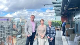 It was a bright breezy afternoon on the balcony of The King St Townhouse Hotel where glasses of Champagne Drappier were served to arriving Commandeurs, Partners and guests. Some opted to gather inside where it was more sheltered. We were about to enjoy a wonderfully convivial, relaxing lunch knowing that a thrilling drama was playing out in the Wimbledon’s Men’s Singles final in South London!