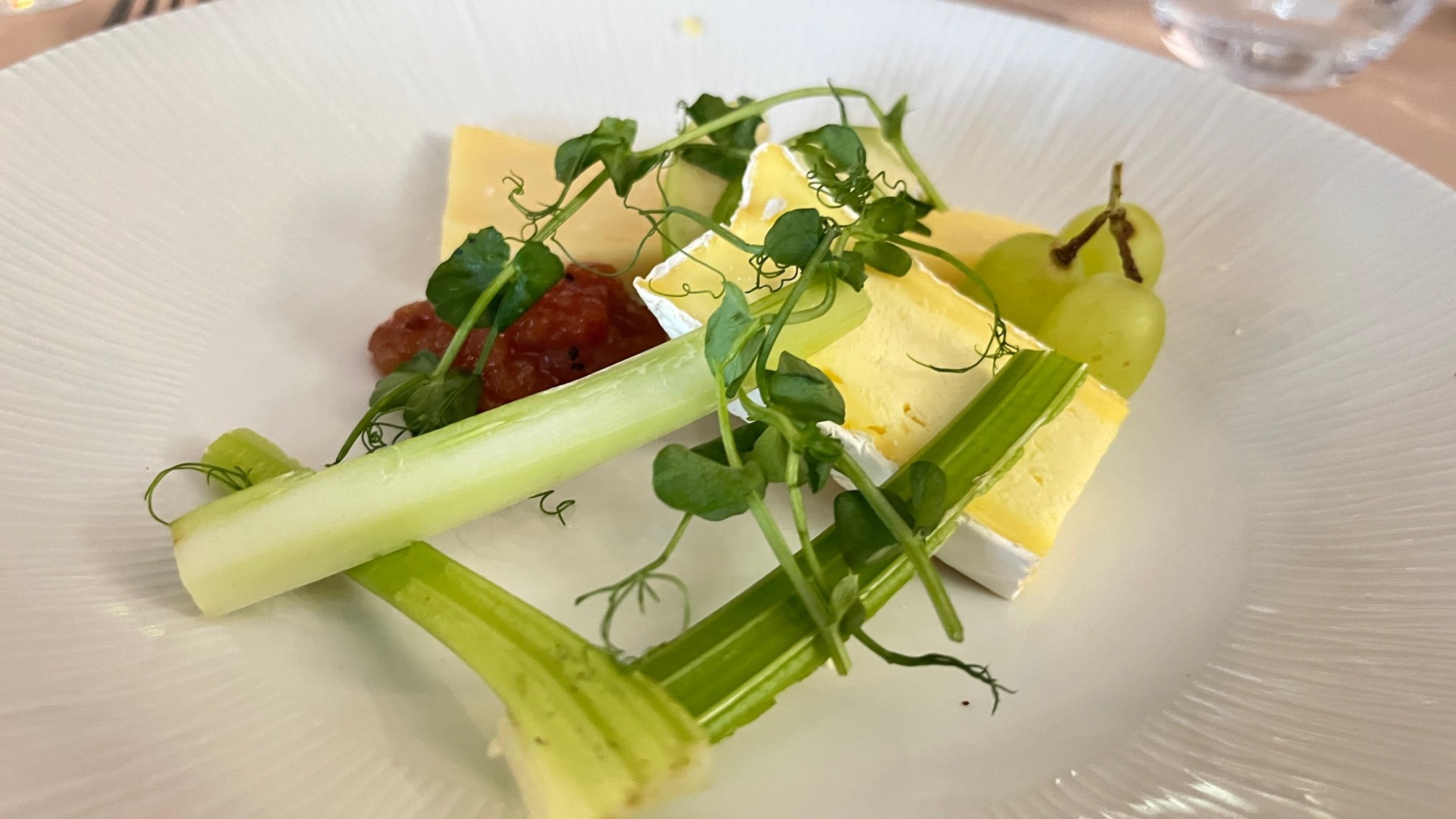 Three red wines from Saint Emilion accompanied the cheese course of Haystacks Cheddar and Sharpham Brie, apple, grapes, celery and fruit chutney and the dessert course of Cream Tea Cheesecake, British Strawberries & Clotted Cream. Each of the Saint Emilion wines, Chateau Fonplegade, 2015, Chateau Grand Corbin Despagne, 2016 and Chateau Clos de l’Oratoire, 2016, were wonderful and a great match to the food – particularly the cheese course.