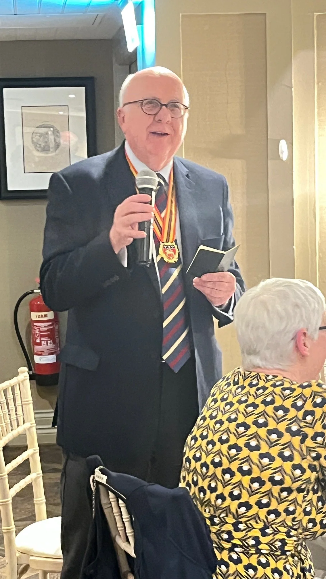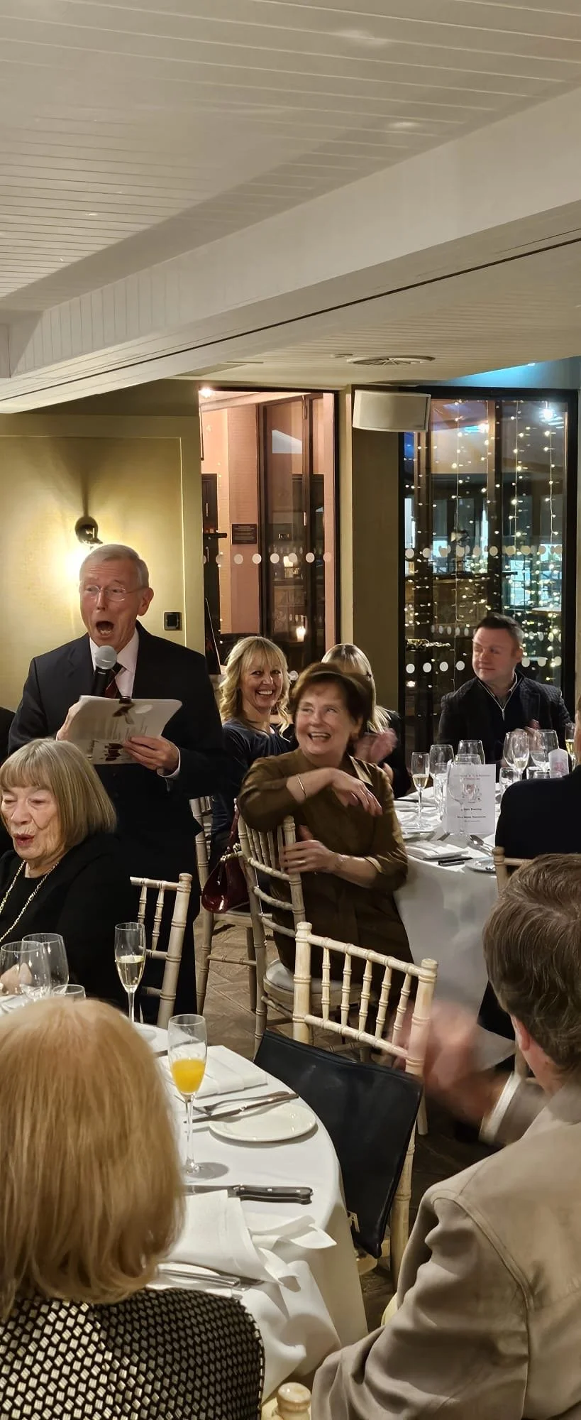 The evening formally kicked off with the intronisation of 2 new members, Mark Redman and Keith Barlow. The Maître, no doubt to some relief of many present, explained that neither new member was a lawyer. Their professional and social backgrounds were introduced to the diners by retired Judge and solicitor, Commander Appleby.