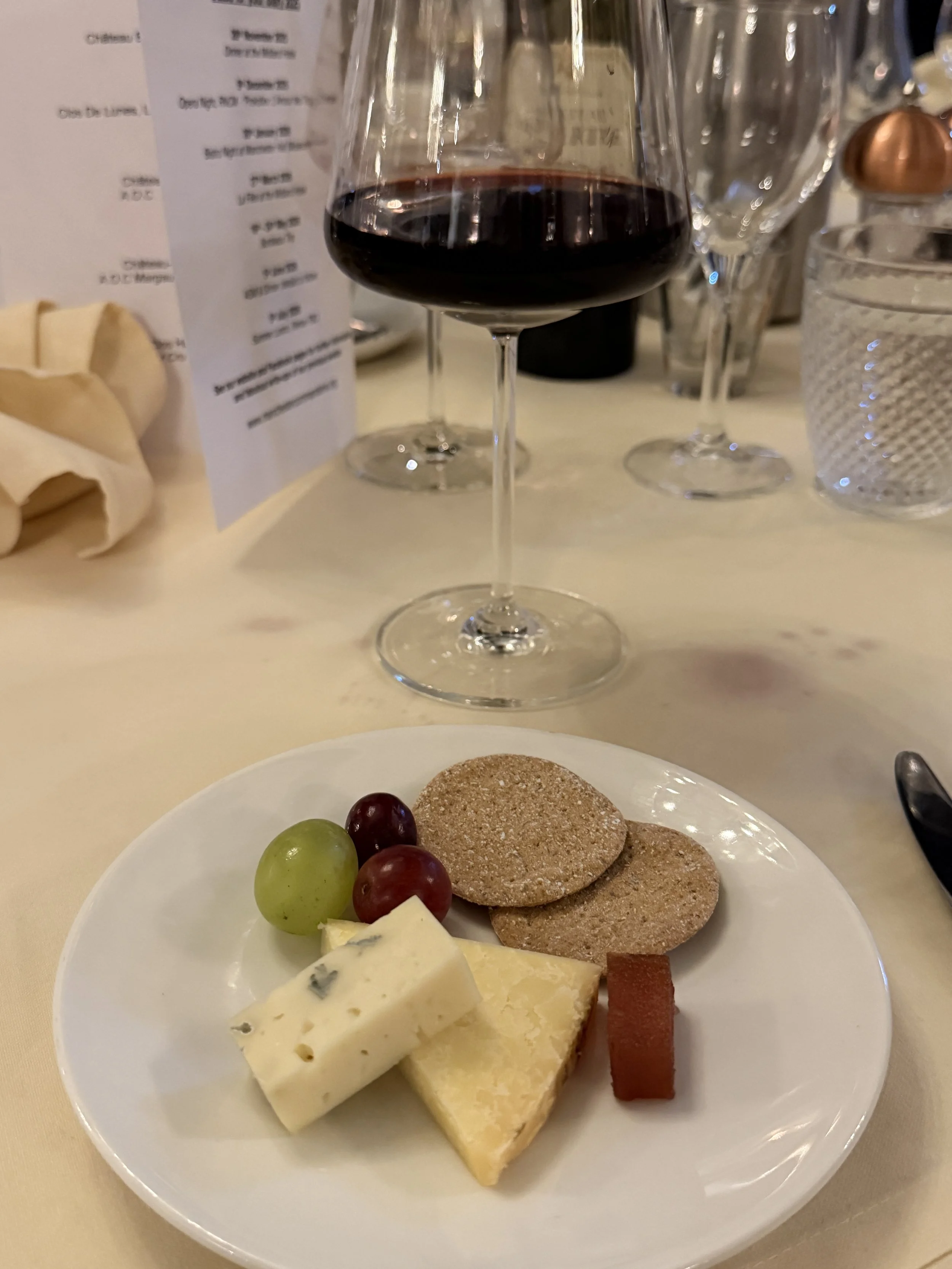 Whilst all of the wines were enjoyed, with many of those attending having their own particular favourites, the two wines of Château Malartic Lagravière and the Lalande- Borie were very well received. The most interesting wine to be tasted was the white wine of Black and White Blancs de Noirs, 2024 which had good depth and gave a slightly sweet finish. Remarkable, given that it is a white wine of 100% Merlot grapes!