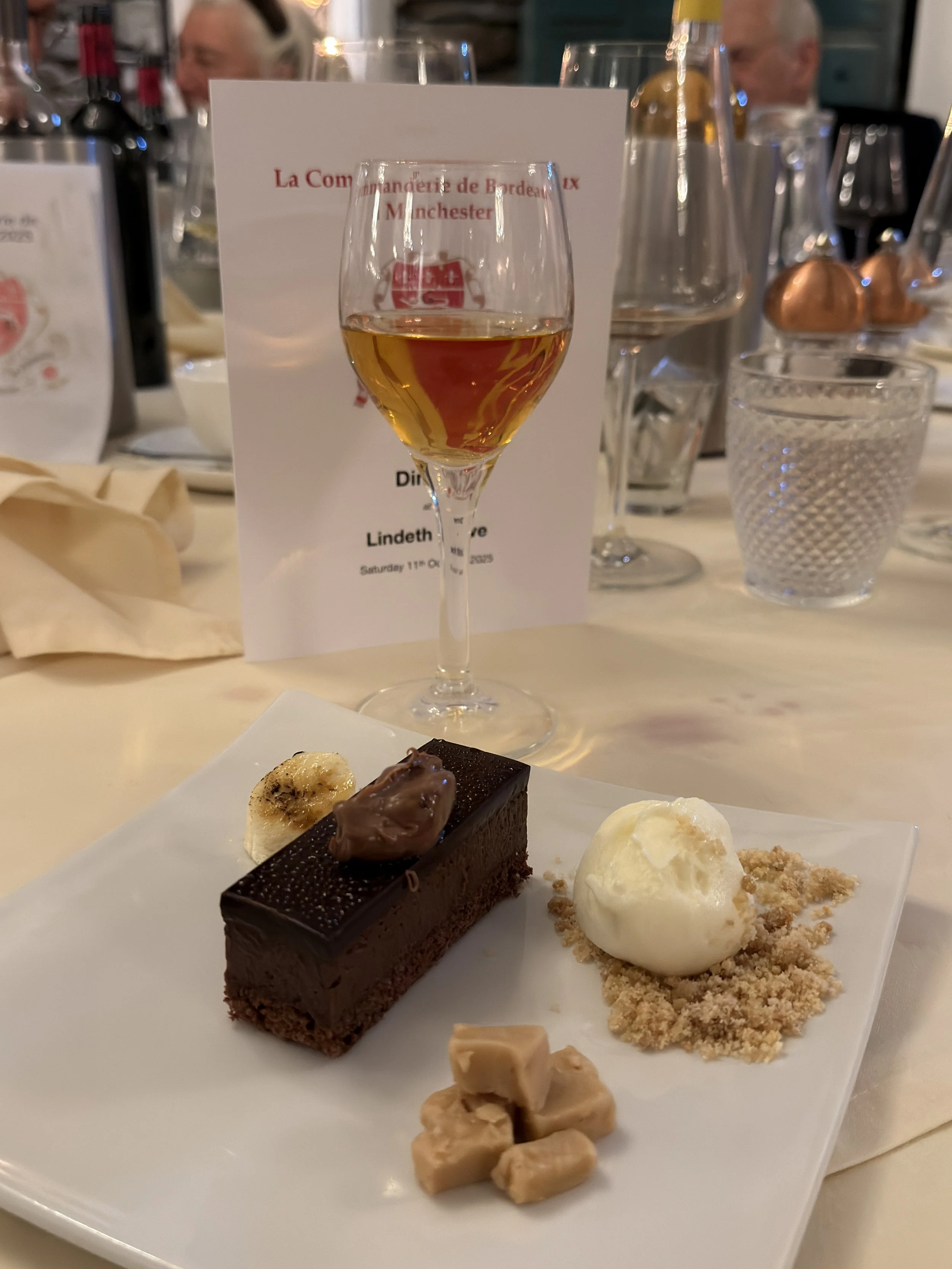 As the dessert of Dark Chocolate Marquise Banana, Fudge, and Vanilla Ice Cream was served, the final wine of the weekend event, Clos Haut-Peyraguey, 2014, AOC 1er Cru Classé, Sauternes was served. And what another delight – an ideal accompaniment to the Chocolate Marquise with flavours of honey and apricot and a full-bodied, fresh finish.