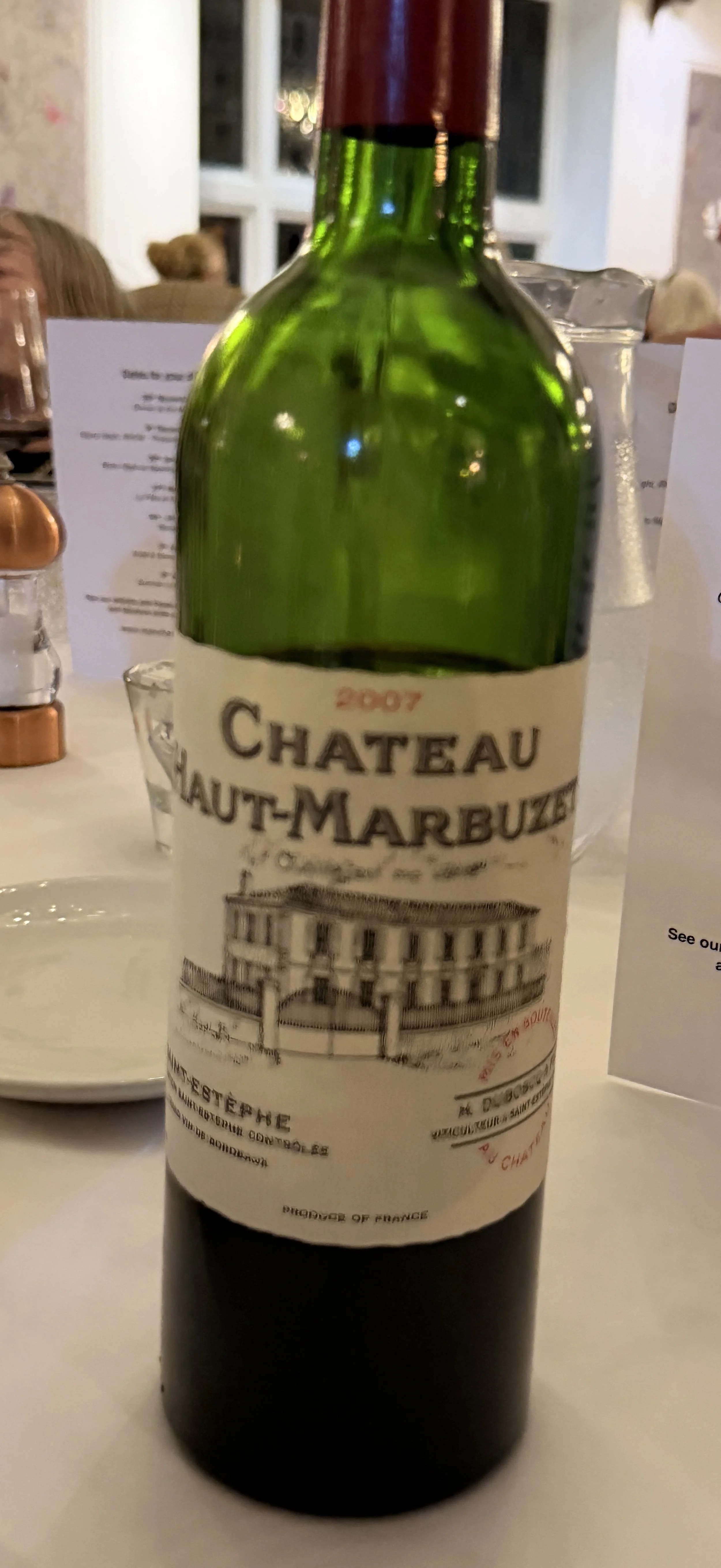 After the delightful Gazin 2012 many wondered how the Château du Tertre, 2006, AOC Margaux, would compare when served with the Cheese course of Cumberland Farmhouse and Shipston Blue with Grapes and Quince Jelly. The good news is the Cabernet Sauvignon wine also showed very well, with black fruits on the nose and a medium-bodied finish.