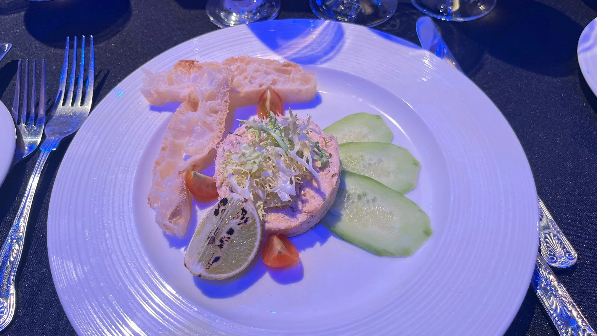 The first course of our dinner in the Carol Nash Suite was Salmon Escabeche, toasted ciabatta and cucumber salad. This was excellently presented and full of flavour proving an excellent match to the Chateau Bauduc ‘Trois Hectares’ 2021 which has a high percentage of Semillon.