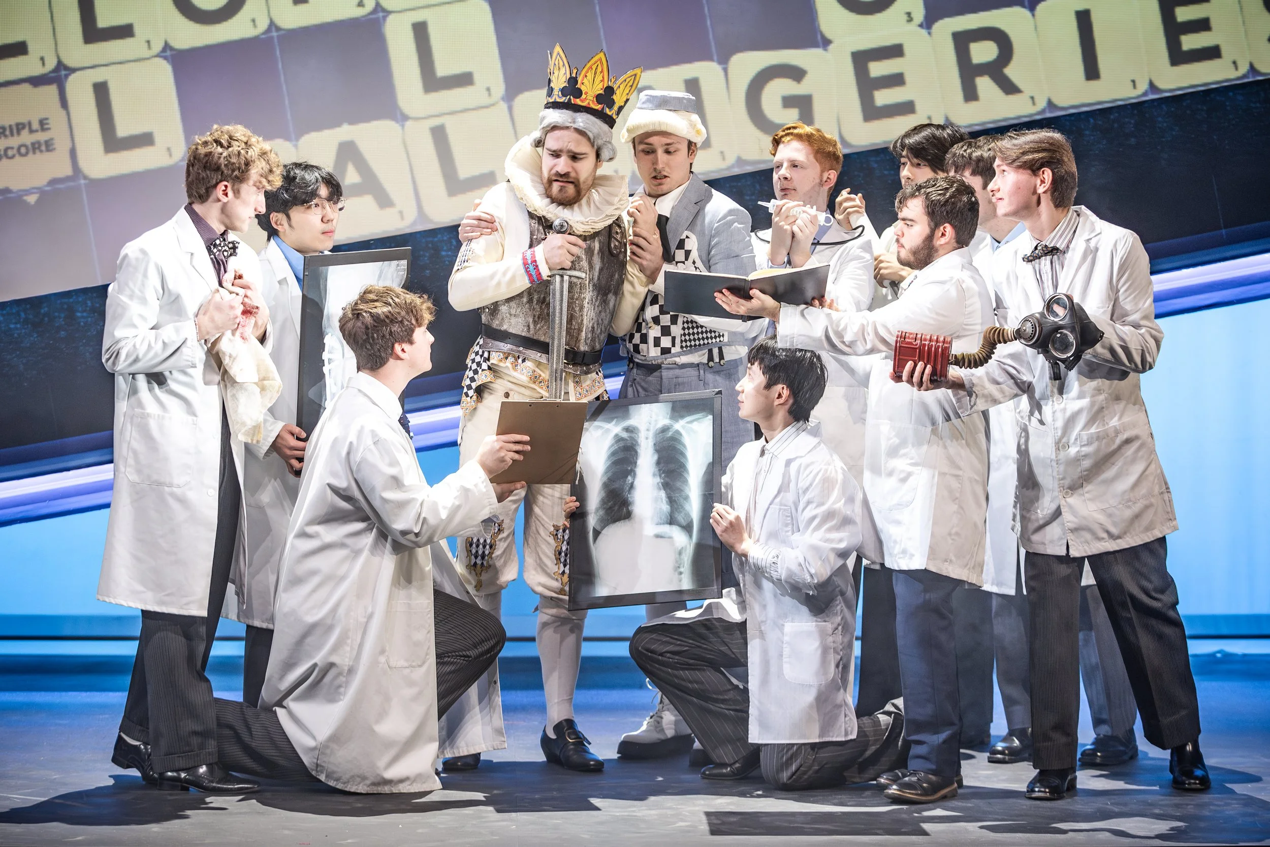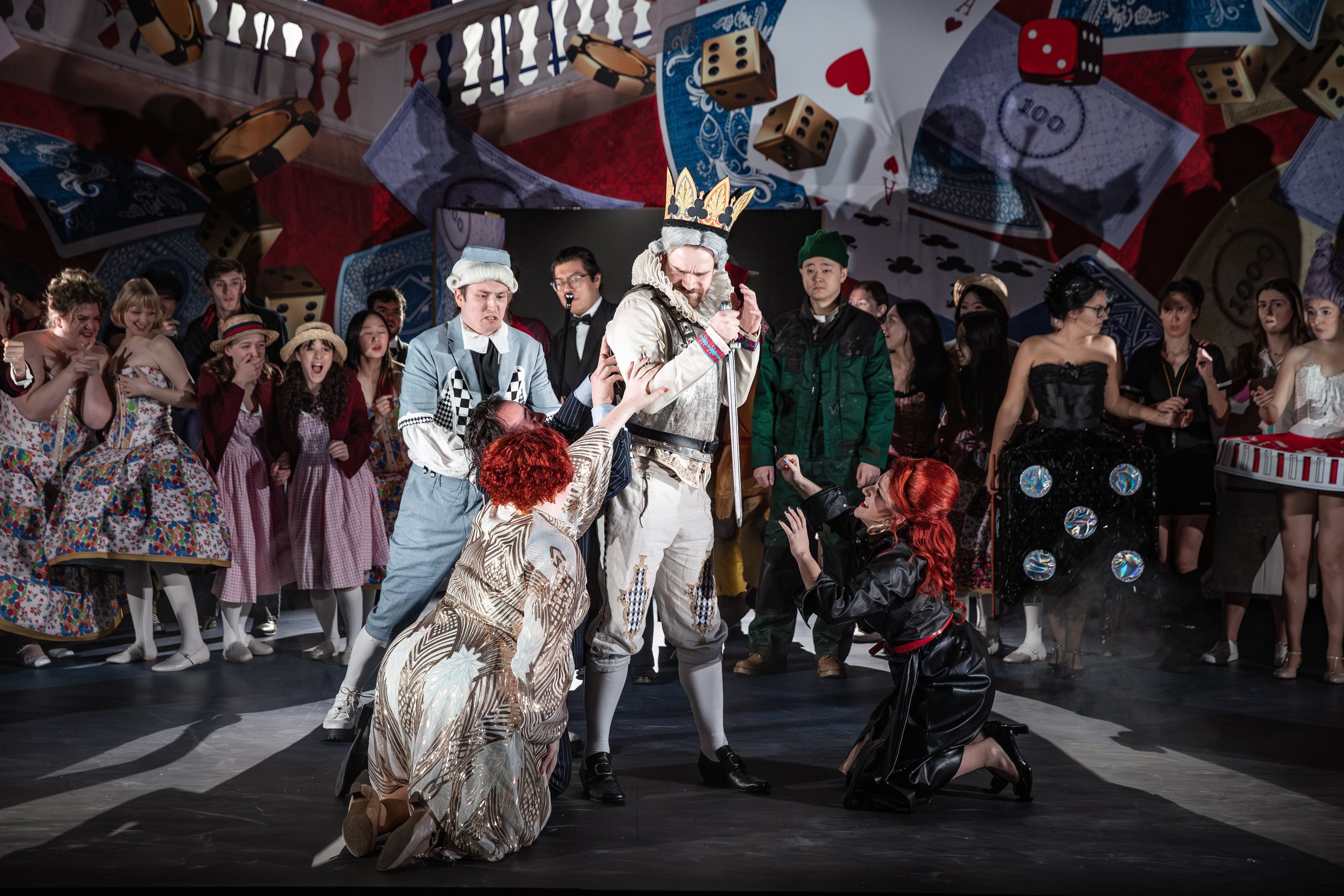 There had been rumours about the size of some of the props for the production. The second half revealed why. There were three giant ‘Oranges’ on stage which were gradually unpeeled each to reveal a lady suitable for the prince. However with various twists and spells the chosen lady disappears only to reappear as a truly giant rat on stage. Thankfully all ends well as the rat fades away and the bride to be returns. There were many twists and turns on the way with wicked rivals, dressed in black of course, but the students pulled off a wonderful performance. Several people rated it the best opera evening they had been to, matched by the truly excellent dinner.