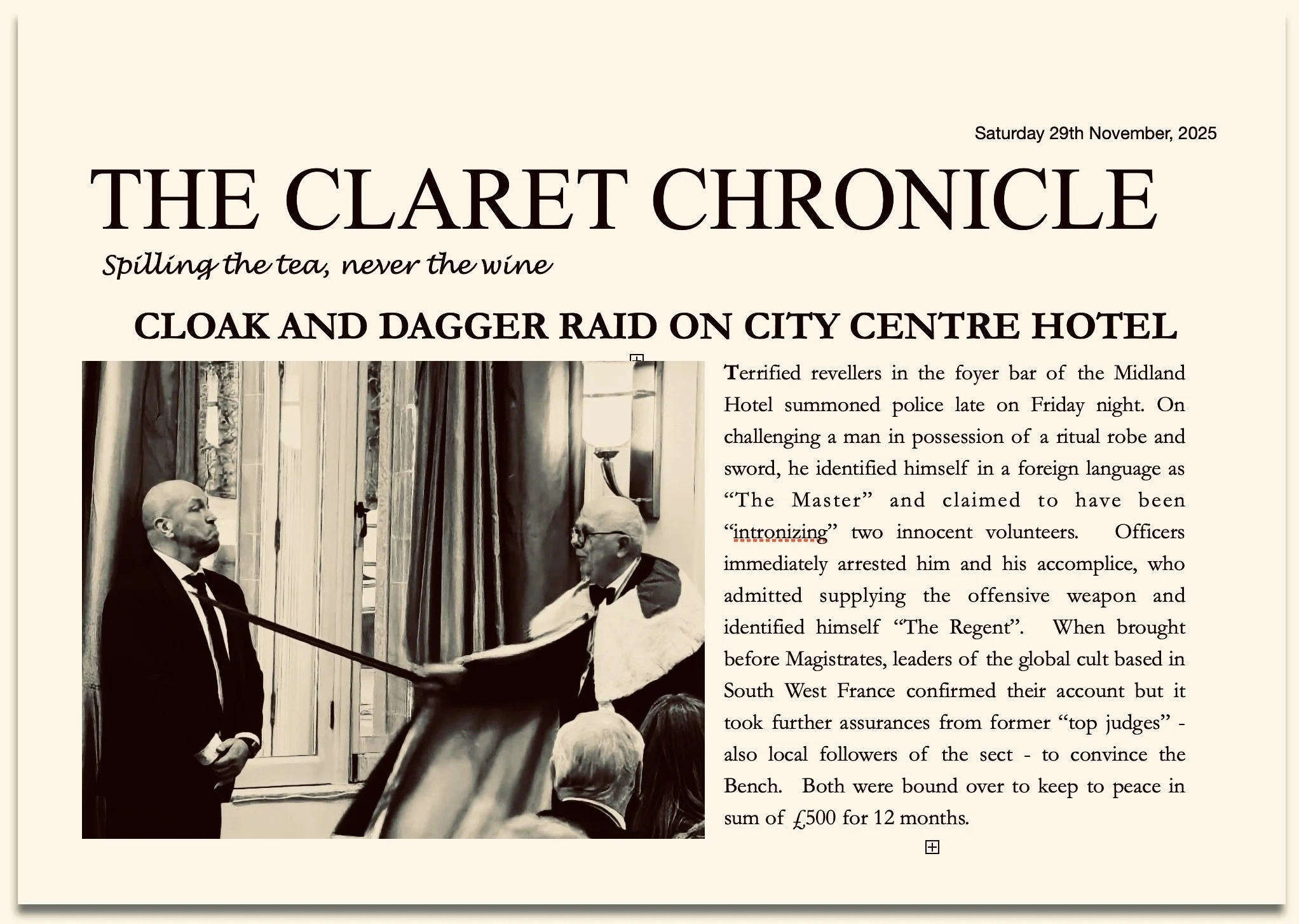Before dinner commenced we remembered solemnly but fondly the founding Commandeurs of La Commanderie de Bordeaux à Manchester, especially Commandeur Brian Blackwell, who died recently. May he rest in peace.