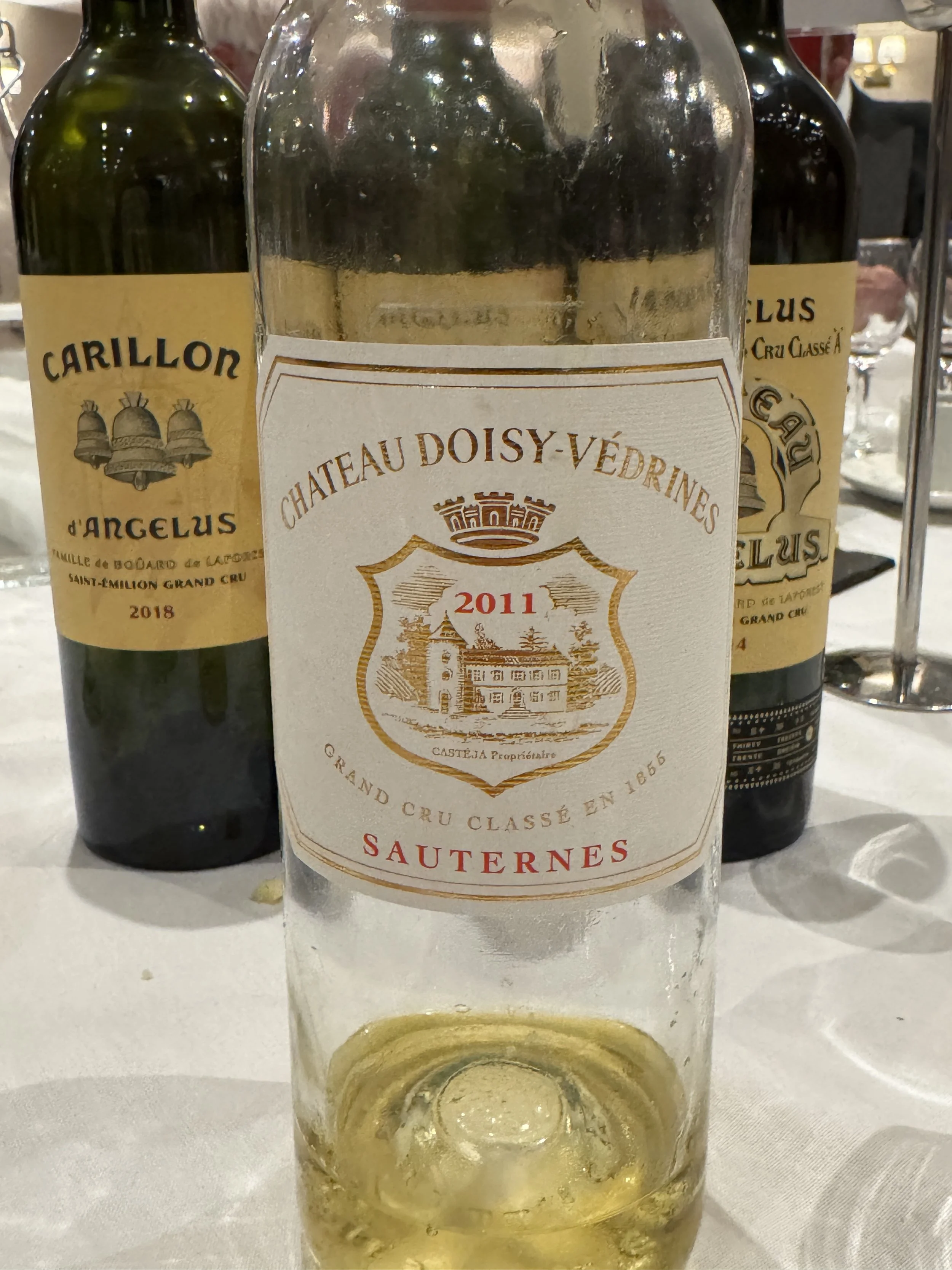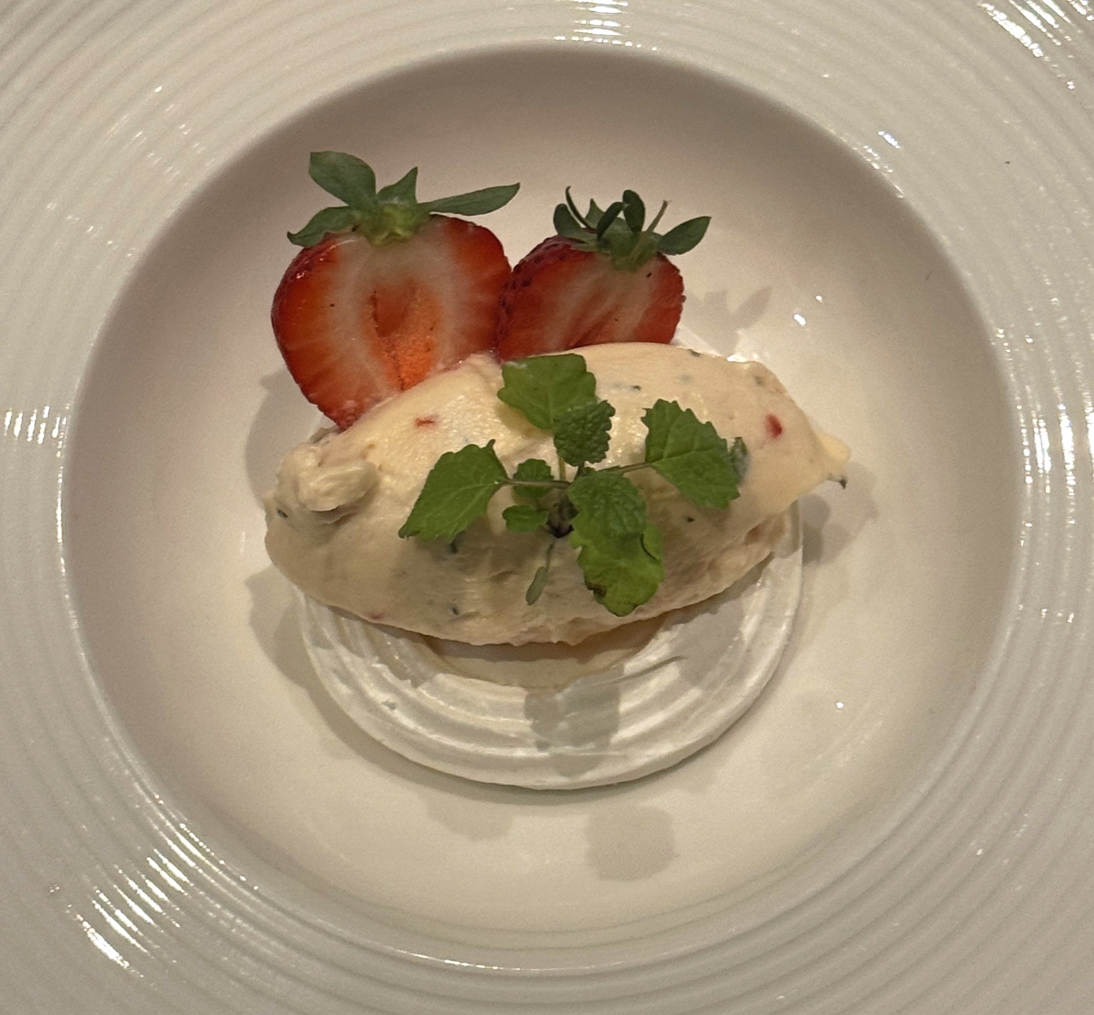 After those delights, a light dessert was in order and Chef offered us a Strawberry Meringue with Elderflower and Lemon Balm Cream and Shortbread Crumb which was just the ticket. We enjoyed this with Château Doisy-Védrines 2ième Cru Classé A.O.C. Sauternes 2011. We had visited this Château in 2018. 2011 was one of the finest recent vintages in Sauternes. The wine was perfectly ready to drink and oozed honey and spice.