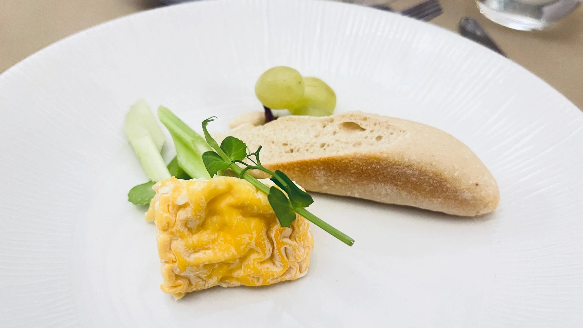 The cheese course was the most delightful L’Époisses, served in classic style with French bread, grapes, celery and almond. The cheese was in perfect condition and was ably matched with Château de Sales 2012 Pomerol A.O.C.. This wine had a wonderful nose and was full of ripe red fruits and subtle oak notes.